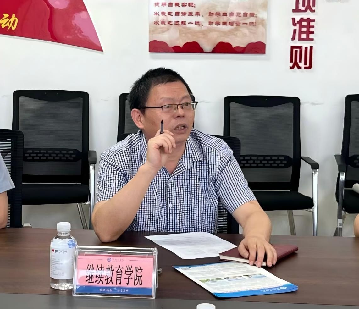 随后,继续教育学院副院长刘玉斌介绍了我校继续教育工作的整体情况,包括成人高等教育、自学考试、非学历培训以及面向行业企业的定制化人才培养项目,并就省级专业技术人才继续教育基地做了详细介绍。